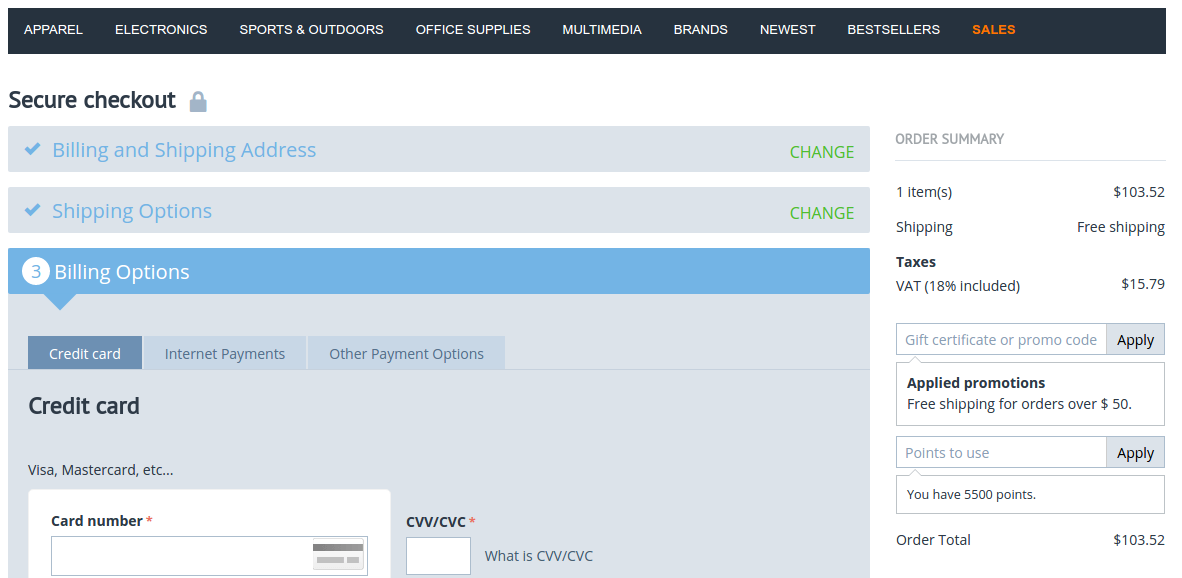 When on the checkout page, enter the amount of reward points you want to spend in the field on the right. The sum you have to pay will be recalculated automatically.